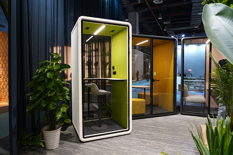 By integrating modern design language with green ecological principles, we ensure that the soundproof booth's practical functionality and natural aesthetics complement each other perfectly. The transparent visual design maintains a connection with the surroundings, the use of eco-friendly materials conveys a commitment to wellness, and precise acoustic technology creates an absolutely private and serene domain. In every detail, the promise of "Nature Coexistence, Office Ecology, and Sustainable Well-being" is thoughtfully integrated.